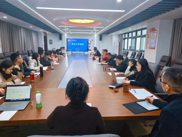 学工处(保卫处)孙炜瑜处长就学校2026年春学期安全工作目标与重点任务做了工作发言,具体包括隐患排查、安全教育、应急演练、智慧安防建设等内容。后勤管理中心王增彪主任、教务处赵朦副处长分别就食品安全、教学与实训安全做了交流发言。